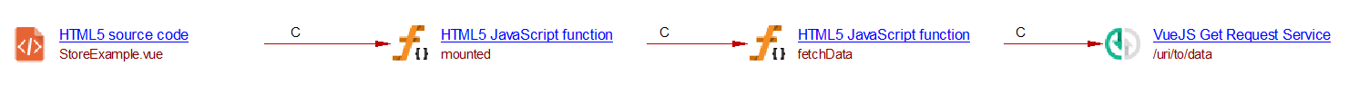 The “Vuex.Store()” calls are searched for throughout the application, and the first parameter is used to resolve different links.